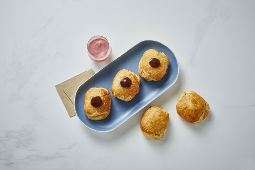 Tages direkte fra frys og afbages i en forvarmet ovn. Bages i 18 min. i varmluftsovn ved 190°C. Produkterne afkøles i 15 min. inden dekoration. Bagte produkter bør spises indenfor 24 timer efter bagning. Tilberedes i Airfryer ved 180°C i ca. 17 minutter.