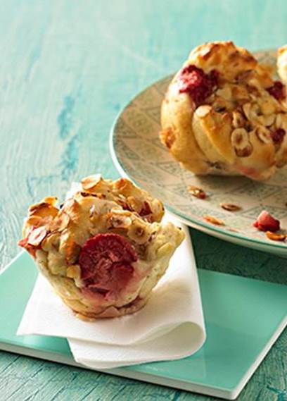 Sommermuffins med jordbær og hyldeblomstsukker