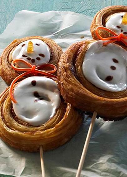 Søde snemænd af mini kanelsnegle
