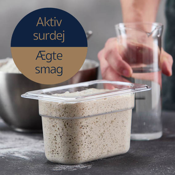 Sulten efter saftigt surdejsbrød vokser stadig blandt gæsterne på caféer, hoteller og i kantiner. Men det kræver tid og ekspertise at sætte det perfekte, smagsafstemte surdejsbrød på bordet. Derfor har vi nørdet surdej, og lancerer nu en række nye surdejsbrød, så det bliver nemt at servere lune og lækre surdejsbrød med den helt rigtige krumme og duft.