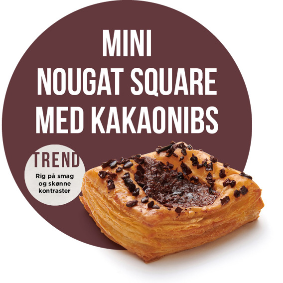 Mixkassens Mini Square med cremet nougatfyld og sprøde kakaonibs med intens kakaosmag er helt i tråd med den aktuelle ”texture play”-trend, hvor kontraster som sprødt, cremet, blødt og knasende mødes i hver bid.